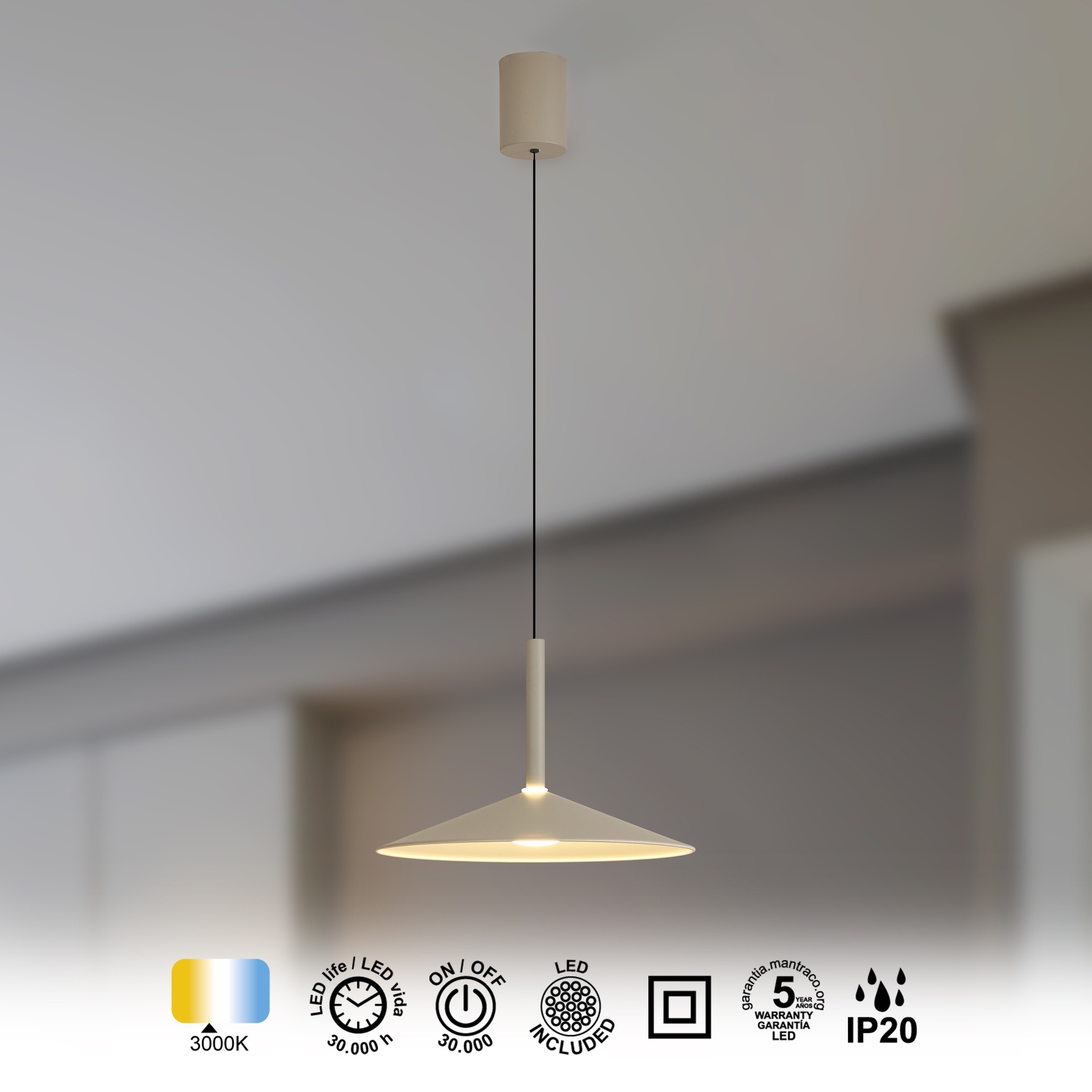 Suspension LED avec système monte et baisse. Lumière blanc chaud 3000K, 800 lumens, design moderne et réglage de hauteur pratique.