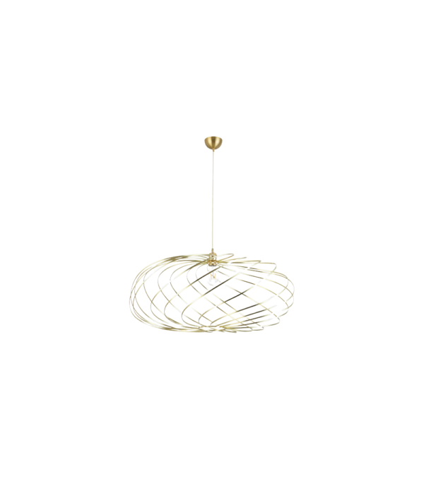Pensée comme une véritable pièce décorative, cette suspension en métal or de grand diamètre s’impose avec élégance dans les intérieurs les plus exigeants. Son design sculptural, à la fois aérien et graphique, apporte une présence forte sans jamais alourdir l’espace.