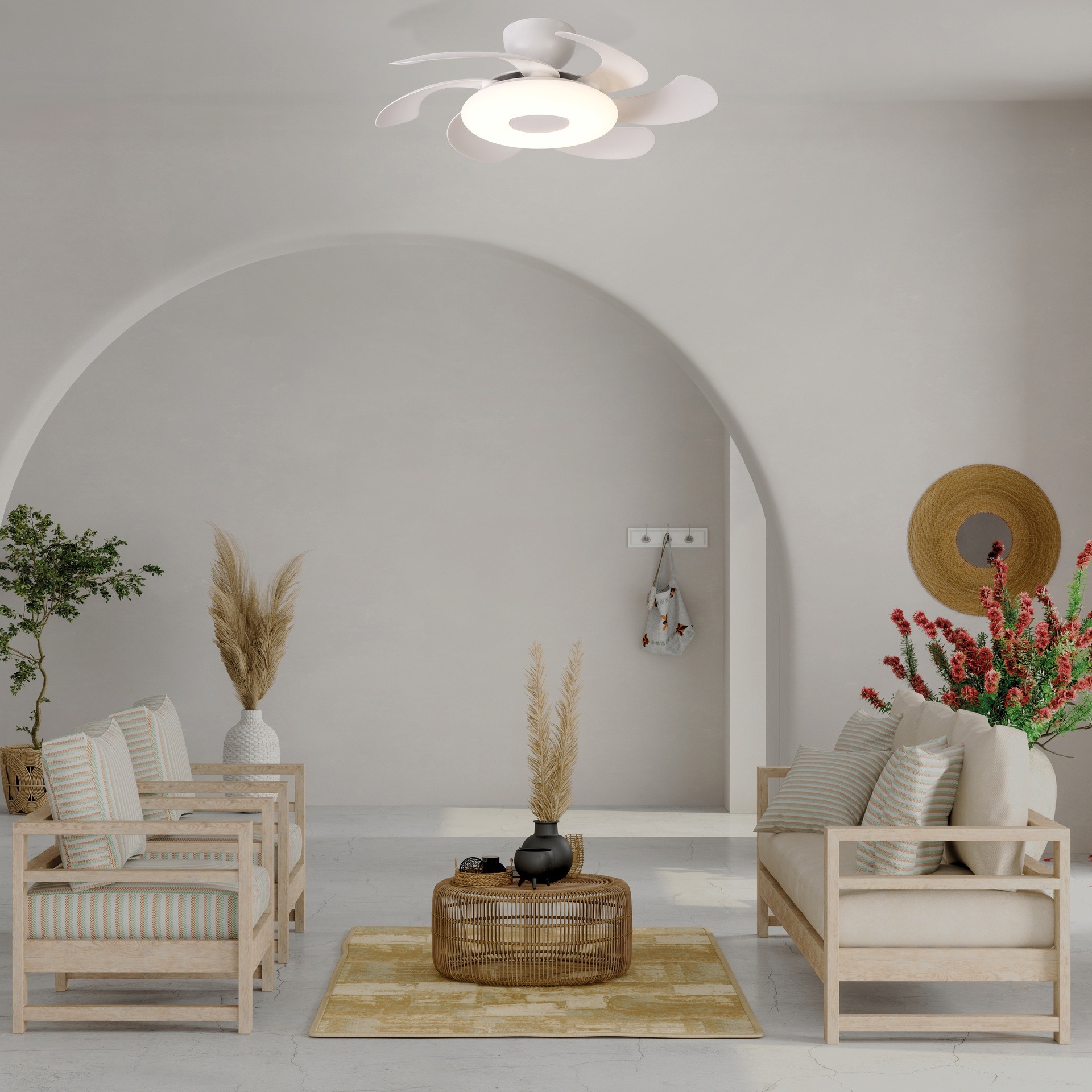 Un ventilateur plafond design avec lumière pour un intérieur moderne